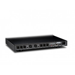 The BAX-1 is Bryston new state of the art digital crossover. Specially programmed at the factory for full compatibility with our loudspeaker models, the BAX-1 is a perfect fit for your Bryston active system. Composed of two channels of analog to digital conversion, the BAX-1 converts full range analog audio from your preamplifier, to an equivalent digital audio signal (sampled at 96kHz and decimated to 24 bits). This signal is passed to a high-powered DSP core which performs the 3-way crossover function for each channel, and applies any user selected filters for altering the bass response of the loudspeakers. Six bands of audio (three per channel) are passed to six digital to analog converters, which then feed six amplifier channels (three per loudspeaker) via six balanced analog outputs.